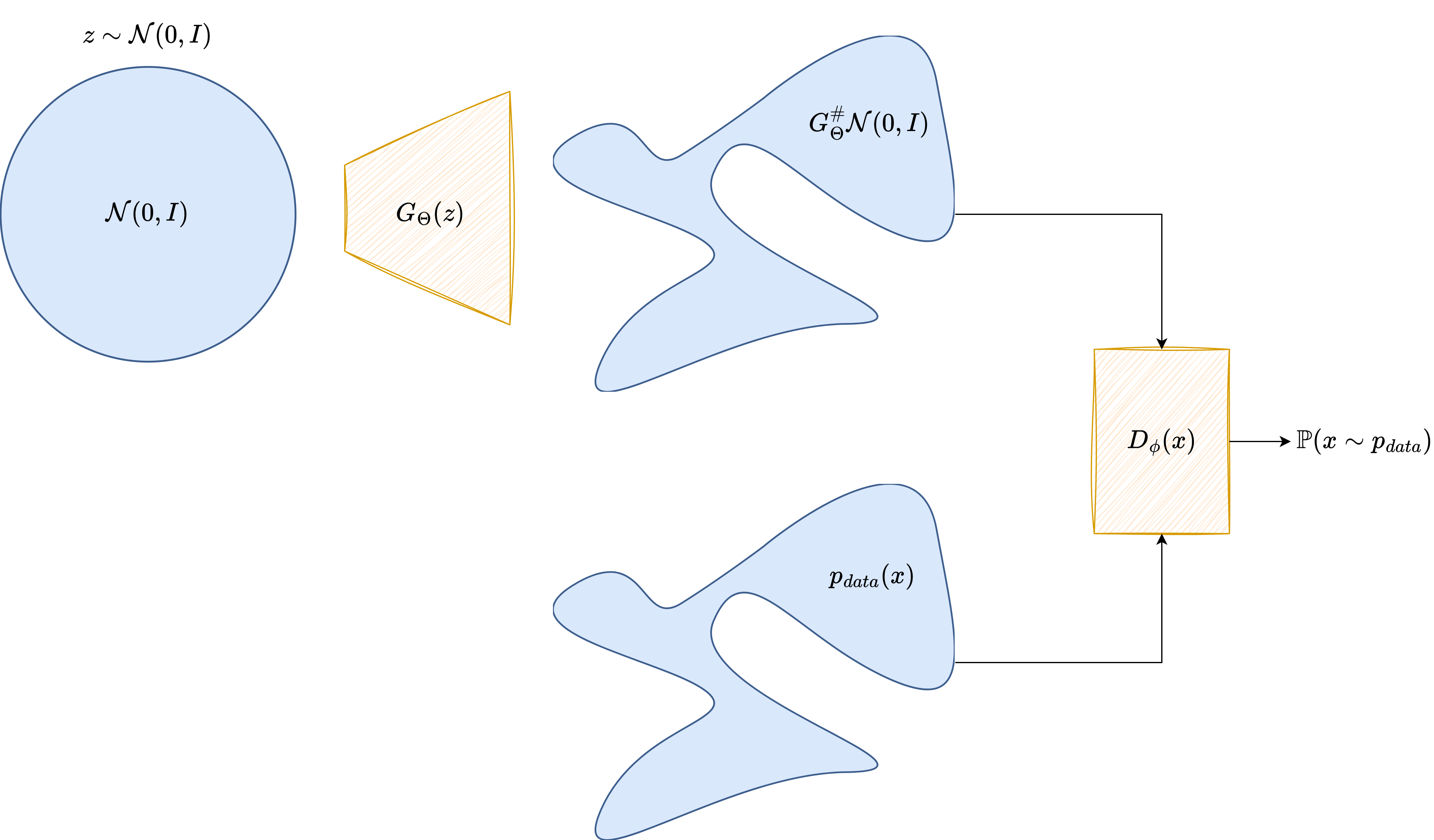 GANs are trained using an adversarial process between a generator \(G_\theta(z)\) and a discriminator \(D_\psi(x)\):