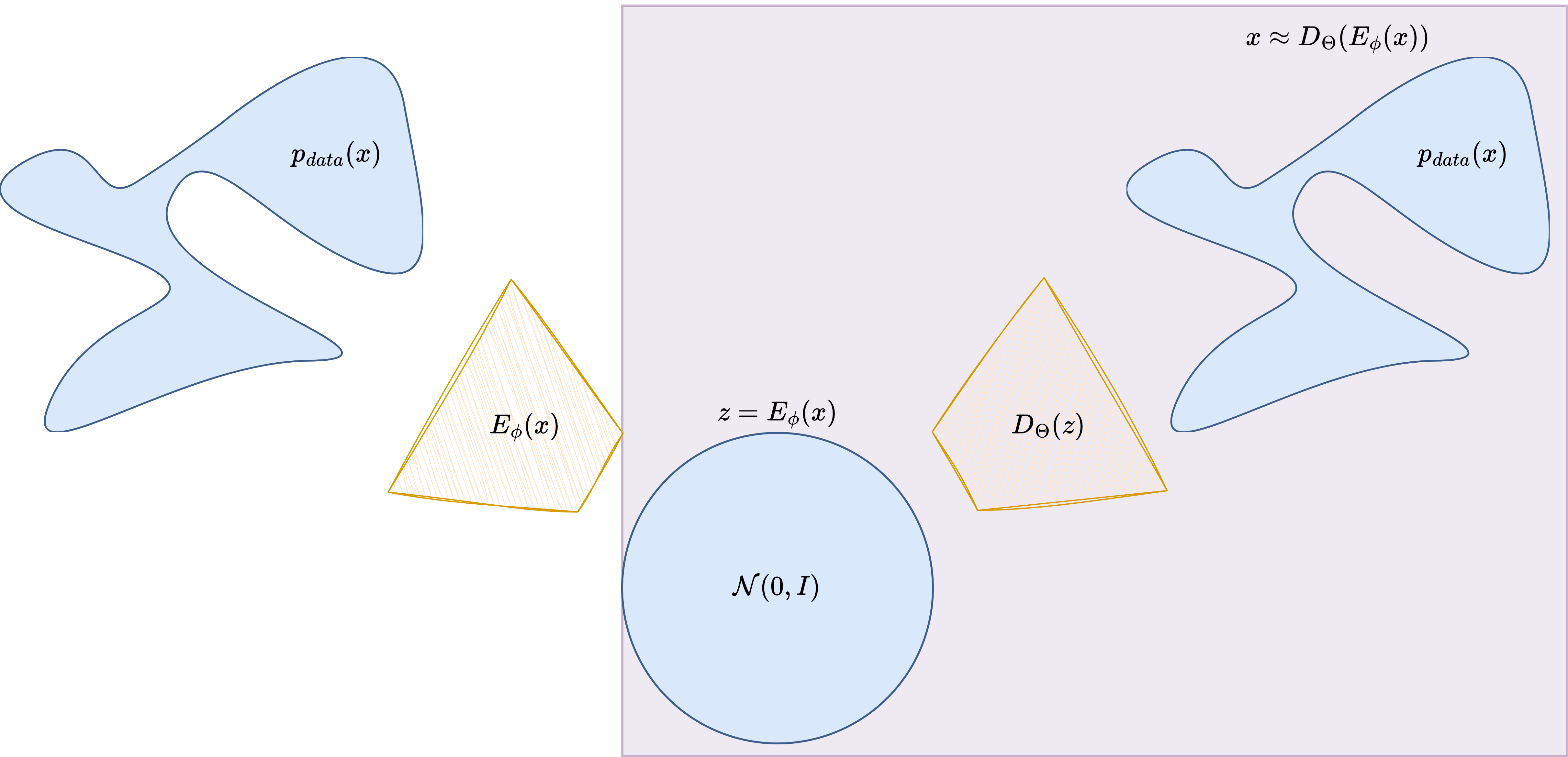 Latent variable models assume that observed data \(x\) is generated from some latent variable \(z\), typically sampled from a simple distribution such as a Gaussian: